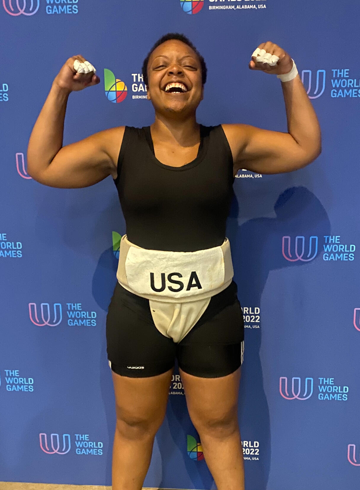 Christina Griffin-Jones uses she/her pronouns and was introduced to sumo by her partner, Jj and started participating in practice in 2017. She has been competing since 2020. Christina has medaled in both heavyweight as 2nd Place and middleweight as 2nd Place. In 2022, Christina and Jj represented the United States at the World Games, an Olympic event, making them the first Black couple to represent the US at the World Games in Sumo. In Christina’s free time, she shows up for San Diego’s Black Queer community and for people who have been harmed and killed by police. According to Christina, practicing Sumo has helped her see herself as strong and like no fight is too big for her and her teammates.